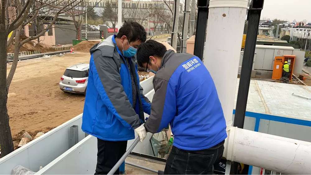 設備投入運行,兩套一體站安裝在醫院隔離區外,總占地不超過4㎡,系統采用全封閉管路,保證維護人員的安全,可隨時進行維護,確保監測數據準確。